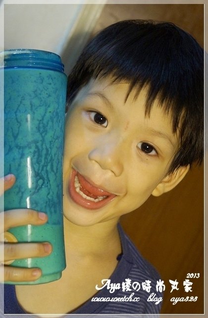 是說~他真的乖乖一整杯喝完(相當於吃了一整顆的火龍果) 你說是不是超級方便阿!!