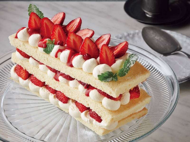 為了突顯出草莓的素材感,僅以海綿蛋糕夾住,做成簡單的風格。