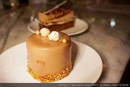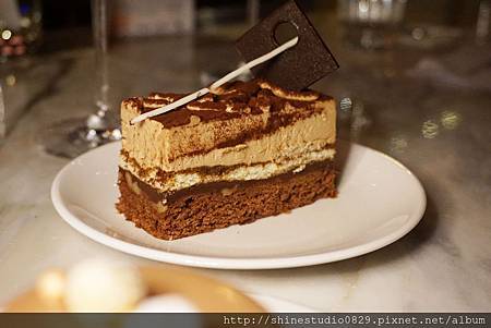 一道是巧克力蛋糕 , 上層的奶油有冰過 , 有點冰淇淋的口感