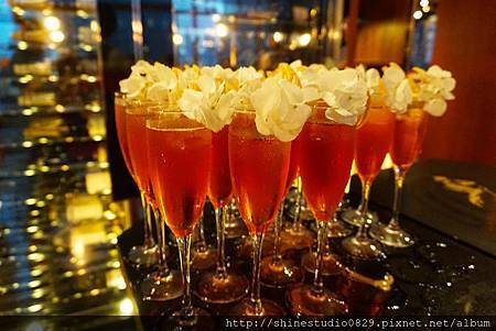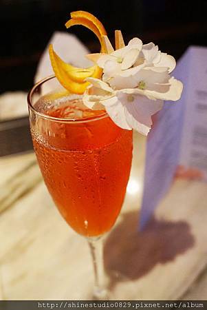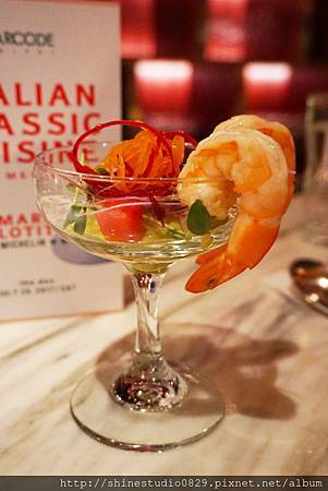 以雞尾酒杯當作盛裝的器皿,也呼應了在BARCODE餐酒會的氣氛