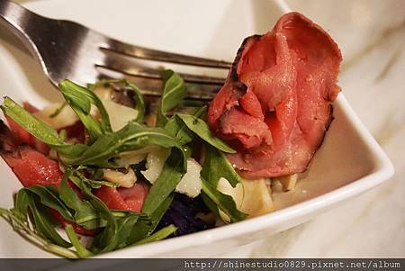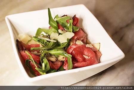 義大利餐點中最受歡迎的帕達諾起司在此現身 , 屬於硬質的乳酪和牛肉細緻有點反差
