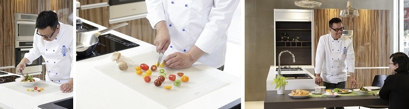 Jacques主廚認為瞭解自己對廚房的要求,為進行規劃相當重要的一環:主要的掌廚者是誰?是否常下廚?喜好的烹調方式?常用的電器用品有哪些等,都必須仔細想清楚。接著,就能與櫻花廚藝生活館的客製化服務順利接軌,免費到府丈量,提供清楚立體的3D模擬圖,站在專業的角度與消費者面對面溝通,解決管線、設備與動線上的問題,消費者則依據風格偏好進行設計選擇,打造一個安全無虞、符合人體工學、使用習慣與風格獨具的廚房,將不再是遙不可及的事。
