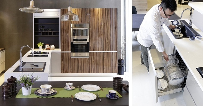 電器設備高效率:透過電器櫃收納,再也不用擔心電器擺放位置不整齊而感到凌亂,因此櫻花廚藝生活館按照家庭所需規劃適用的電器設備,不僅節省能源,還能增加效率與提升生活質感。以健康概念與料理多元性為前提,Jacques建議家用廚房都應規劃烤箱,不僅降低油脂使用比例,減少油煙汙染,更可增加烹調的變化性;越來越被家庭所接受、普遍設置的洗碗機,不僅省時節能,更能增進家庭和諧氣氛,而隱藏式設計將洗碗機、烘碗機嵌入櫃體中,外觀採用相同的門板,與廚櫃風格融為一體,打造完美的整體廚房。