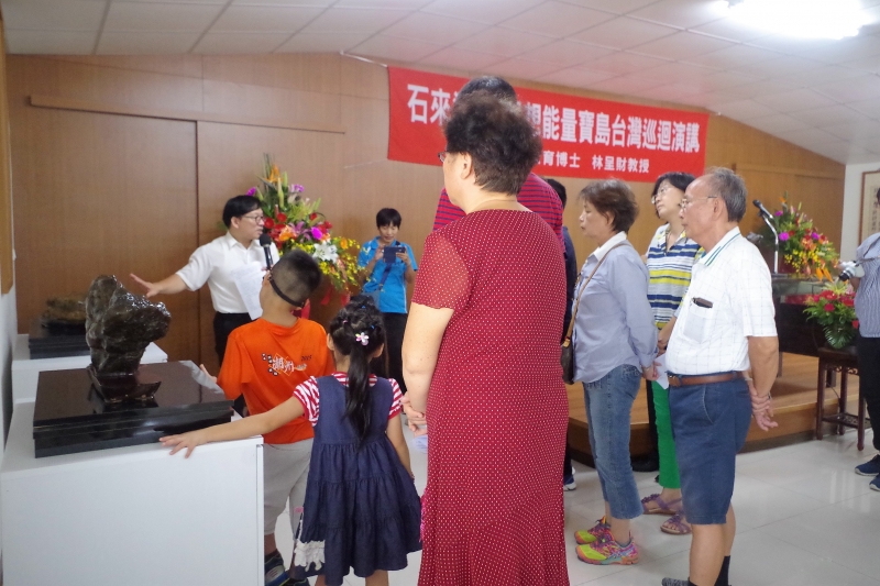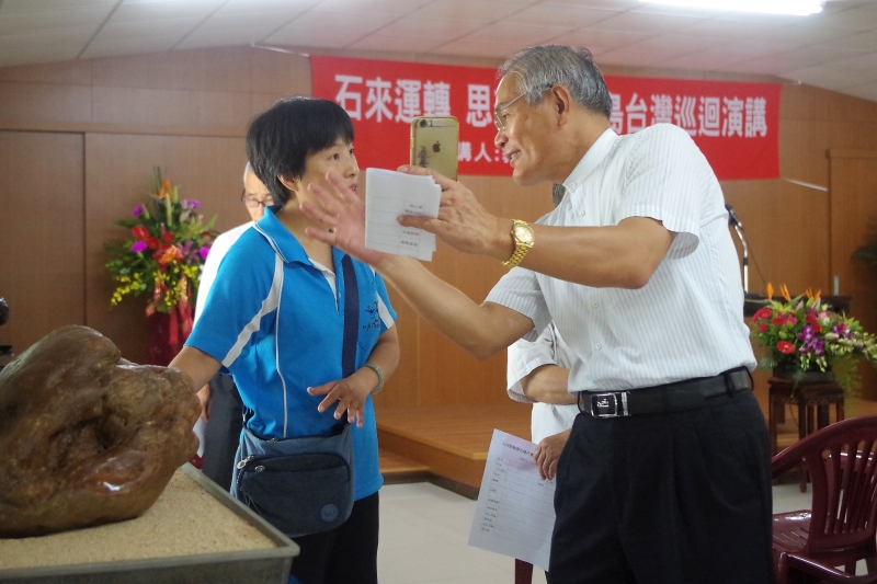 鄭女士及數位志工在現場為來賓們解說雅石的石種、石銘及欣賞意境,更增添來賓們的賞石樂趣。