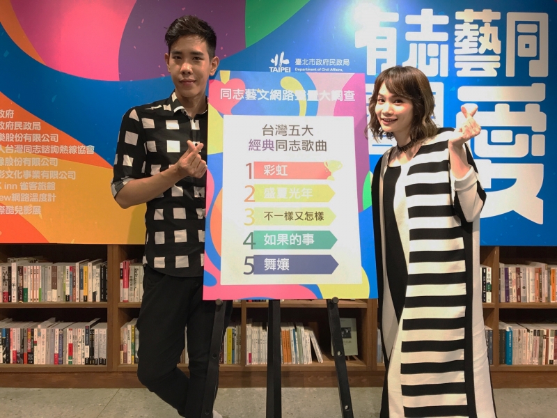 由臺北市民政局舉辦的2017臺北市同志公民活動主軸設定為「有志藝同看見愛」,並與影視及網路媒體及同志諮詢熱線合作,著重在同志藝文層面的探討,規劃「彩虹攝影展」、「彩虹分享座談會」、「同志影院」、「藝同策展」等四大主題,更特別與網路溫度計平台合作,進行「同志藝文網路聲量大調查」,統計一般網民討論最多的同志「經典金曲」、「經典影視」、「爆紅影視」等三類代表性作品。並由金曲獎最佳樂團「慢慢說」揭曉「同志經典金曲」榜單。