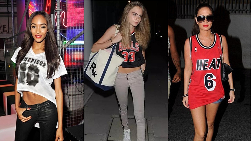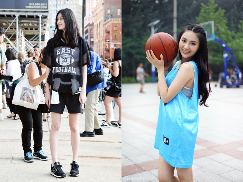 炎炎夏天來說,無袖設計的籃球衣,對嬌小的東方女生來說,直接把籃球衣當one-piece洋裝來穿是最常見的穿搭方式。為了顯得腿長,選擇球衣長度建議Oversize不要太過合身,不然下半身的長度就會太短,稍微長個 1cm 感覺就會好很多。而Oversize球衣加上若隱若現的短褲,露出修長的美腿,最後如果心機的穿上高跟鞋拉長腿部曲線,是另一種時尚的前衛穿搭。如果搭配刷破的牛仔褲、籃球帽及Jordan籃球鞋,也能呈現出較街頭嘻哈的風格。