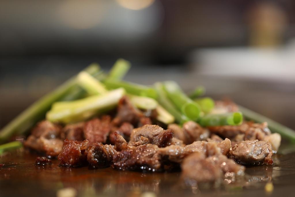 楊欣特別推薦我試試其中一道私房菜「和牛油炒飯佐蔥爆和牛筋」,我不禁納悶,來鐵板燒吃炒飯,有什麼特別的?原來亮點在搭配炒飯吃的蔥爆和牛筋,楊欣說:「這道菜在本館原是招待有點酒意的客人下酒吃,很香、很下飯,現在是私廚獨有,讓客人搭著炒飯吃。」