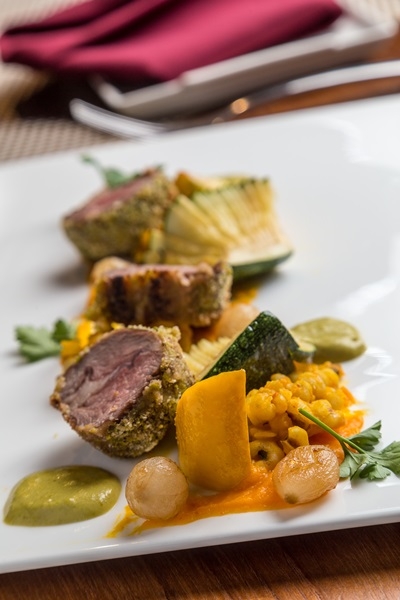 WINE-derful提供輕鬆的用餐氣氛,沒有高級西餐廳的天價與拘束感,卻能享受專業侍酒師推薦的餐酒,與主廚精心料理的惹味美饌。主廚邱繼光除了強調以酒入菜、用酒入味,更要吃得健康,因此肉菜比例為4比6,相當適合長輩享用。「開心果羊排」採用紐澳羊肩,80度低溫料理後,沾上加入麗絲琳白酒與芥末子熬煮的蜂蜜芥末醬,再包裹以美國開心果剁碎烘培,加上麵包粉調製而成開心果麵包粉,放入烤箱烘烤而成,肉質細膩清爽,一旁豐富的時蔬青菜,享用美食的同時也讓身體無負擔,搭配店內來自各大葡萄酒產區的酒,除了紅白酒之外,像是香檳、氣泡酒、甜酒一應具全。來到這裡,挑隻酒小酌一下,放鬆工作與生活壓力,感受宛若歐洲莊園般放鬆的氛圍,不用買機票搭費機去歐洲,就能擁有絕佳的舒壓方式。