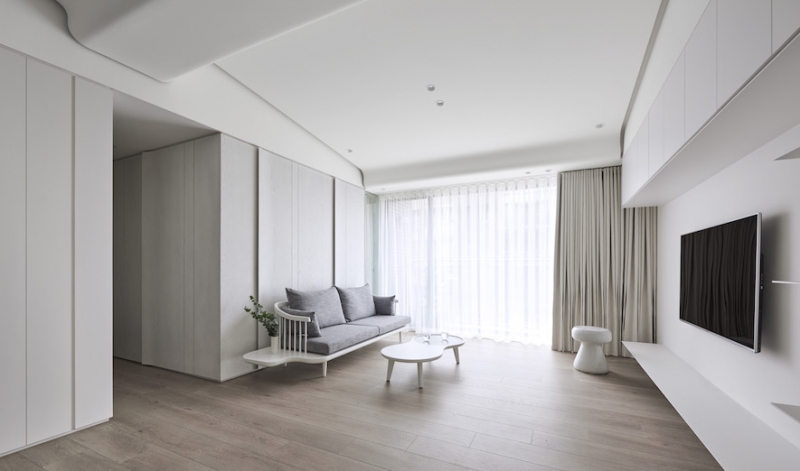 設計總監和設計師Han將簡約帶入生活,以白色做為基底,讓人從根源處感受到貼近自然與人性的美好,再加入不同線條的點綴與建材,堆疊出屋內光線和色彩的層次,提升了簡單的境界,令人悠遊在平凡中的美好,實踐北歐風格帶給世界的幸福純粹。