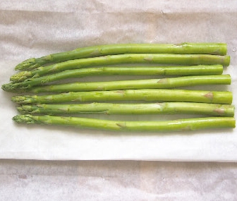 2 烤紙鋪平,擺上蘆筍。(a)