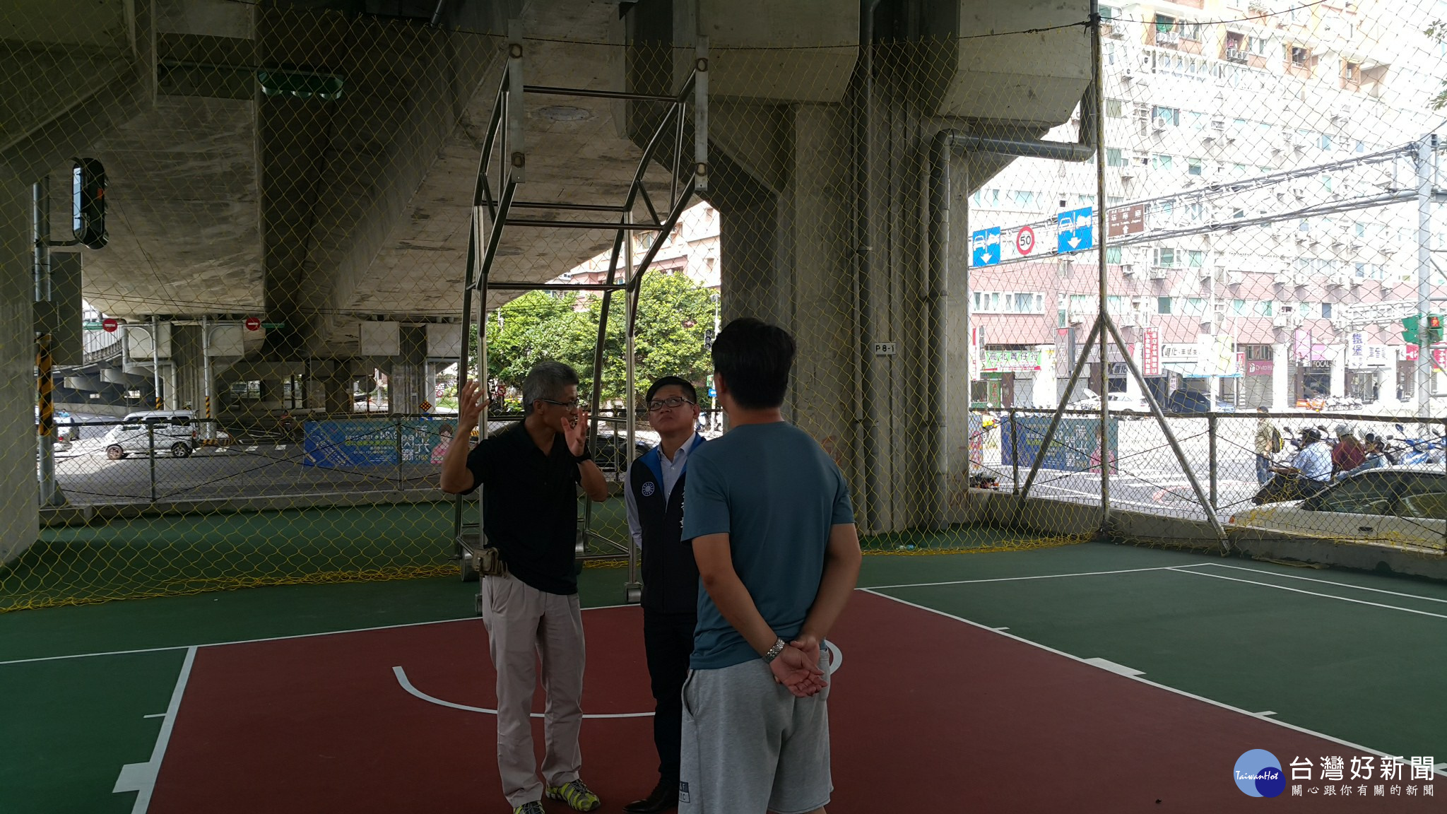 要運動當然也要安全,因此,這次的會勘還特別邀請安康高中籃球隊總教練林建平等人,給予專業評估與建議,林建平表示由於目前圍網高5.5米,與二高橋體間仍有縫隙,就怕萬一個不小心,球丟出了場外,危及行車安全,另外場內周邊還有燈柱、電箱,最好要加裝軟墊,避免民眾跌倒受傷。