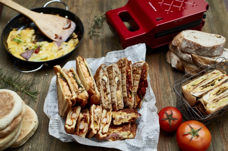 貝果充滿嚼勁的內芯和色澤深厚而鬆脆的外表,加上中空的造型,是十分討喜的麵包之一。將貝果放進三明治機烘烤後,能讓貝果厚度更容易入口,且多了些許焦香味,讓美味更多層次。