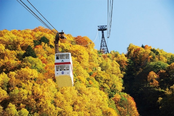 【紅葉見頃10月上旬~下旬】 搭乘纜車欣賞整山紅葉,有最廣闊的景緻。山腰上的白樺平站上紅葉的極盛期在10月中旬、山腳的新穂高溫泉站大概在10月下旬。從第1高空纜車、轉乘第二高空纜車時往山頂瞭望台看過去的話,北阿爾卑斯的絕美景色正等著您。在清晨與傍晚空氣最澄澈的時候、也是搭乘纜車賞景最推薦的時間點。
