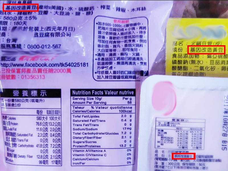 其實不只是豆漿,以黃豆為原料加工的食品,如豆腐、豆干、豆花,醬油及素食者經常食用的豆製品,甚至變身成食品成分或添加物,如肉鬆、泡麵、洋芋片中的黃豆粉、大豆沙拉油、大豆蛋白、大豆卵磷脂等,常在食品成分標示中見到的,幾乎全來自於進口基改黃豆。