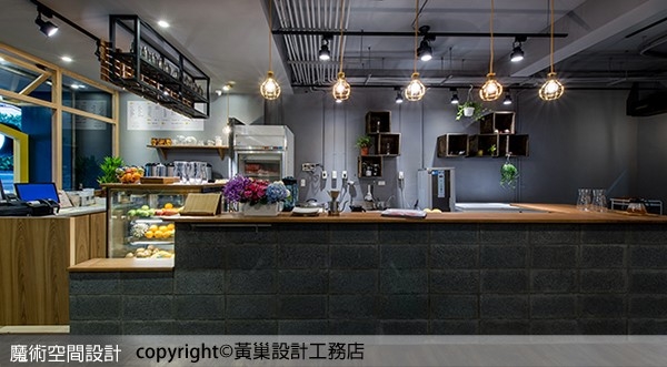3.吧檯使用水泥空心磚砌築基座,搭配木質檯面,表現粗獷與細緻交融的獨特質地。