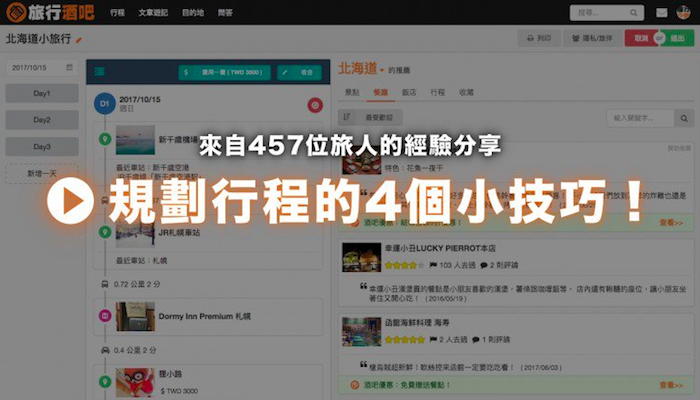 蒐集資料對排行程過程的重要性,除了加深對旅行目地的了解,找出痛點也可以幫助你更有效率的完成行程。對37.2%曾經規劃過行程的旅人來說預估每個景點的預留時間是最困難的,另外32%的旅人則認為是景點間排序的順暢度,還有13.4%的旅人會在排行程的時候,因為想知道某個景點有什麼活動和優惠而困擾。這些痛點都是旅人真實的經驗,所以也非常有可能會發生在你排行程的過程中,讓你蒐集資料更有效率,也許就可以避免掉這些痛點。