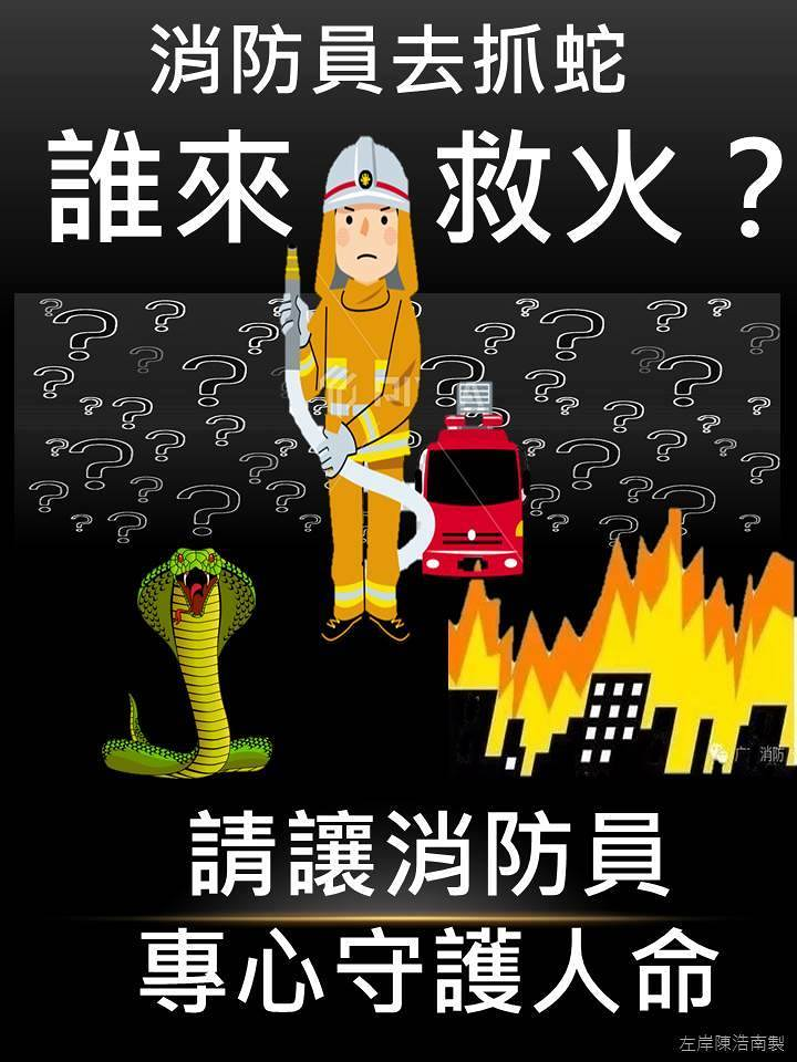 也希望民眾多多支持消防員,而且不要濫用消防資源,打119之前可以多想想,在戶外發現蛇,真的有必要請消防員來處理嗎?