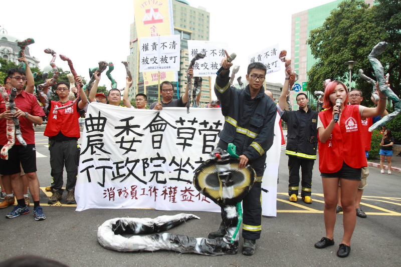 捕蜂捉蛇業務歸入消防單位,造成消防員龐大的負擔,也造成死傷。去年彰化一名消防員在捉蛇過程中被咬傷而截斷手指保命,部份消防員至行政院陳情抗議,政府才在今年初規定農委會為處理蜂、蛇的主管機關;但近日新任行政院長賴清德認為消防員的機動性較高,由農委會處理「不盡周延」,言下之意似乎又要讓捕蜂捉蛇業務回歸消防單位。