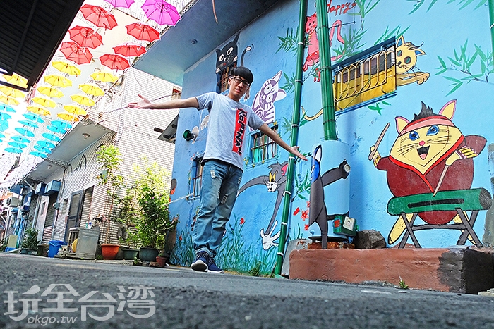 圖說:老舊平凡的巷子裡有非常多隻彩繪貓陪伴,從巷頭遊覽至巷尾驚喜連連絕無冷場/玩全台灣旅遊網特約記者阿辰攝