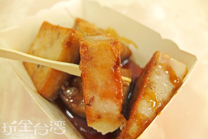 圖說:油油亮亮的芋粿,外皮酥脆可口,內裡香嫩柔軟,滿是芋頭自然的清香/玩全台灣旅遊網特約記者阿辰攝