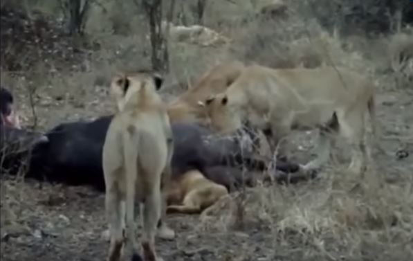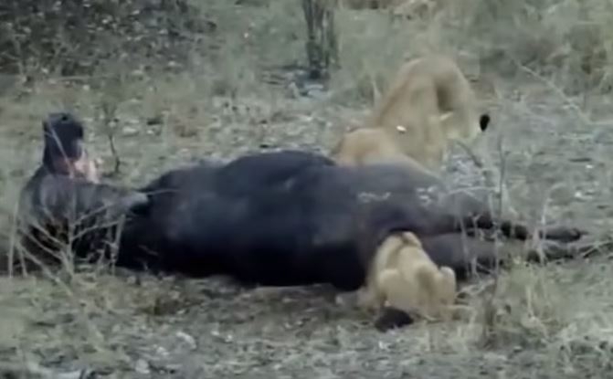 幾隻獅子獵殺了一頭水牛,在享用這一美味大餐時,卻發生了這驚人的一幕——其中的一隻獅子使出傳說中的“掏肛技能”