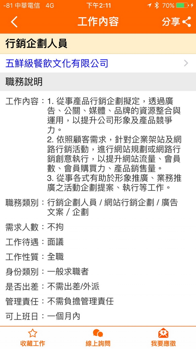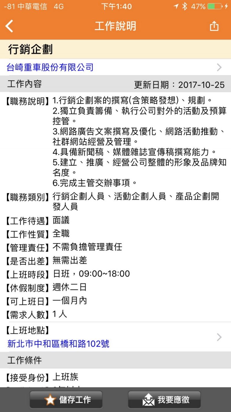 「518找工作」的職缺說明頁