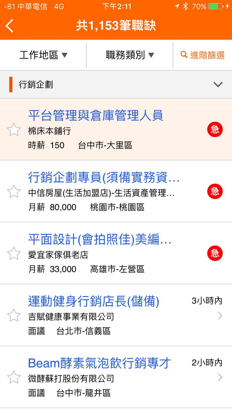 「yes123找工作」是由yes123求職網所推出的求職APP,比起其他三支APP,最大的問題是太像手機版網頁了,感覺上有點像是網頁版披上APP的外衣,雖然整體使用上尚稱流暢,不過比起原生APP設計,在操作效率與使用者體驗上還是有一段差距。