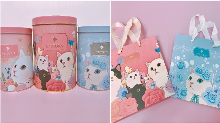 而這次,Unicorn又要以擅長的法式甜美設計擄獲少女們的內心啦!這次他們特別與韓國超萌人氣畫家Jetoy合作,推出限量版Choo Choo Cat甜蜜貓包裝,共有三種風格,皆以粉色系為主色調搭配不同大小罐子,另外也特別設計同系列的提袋,讓人光是第一眼看到那粉色系的可愛精緻包裝,即使不是愛貓一族,也想要立刻購入。