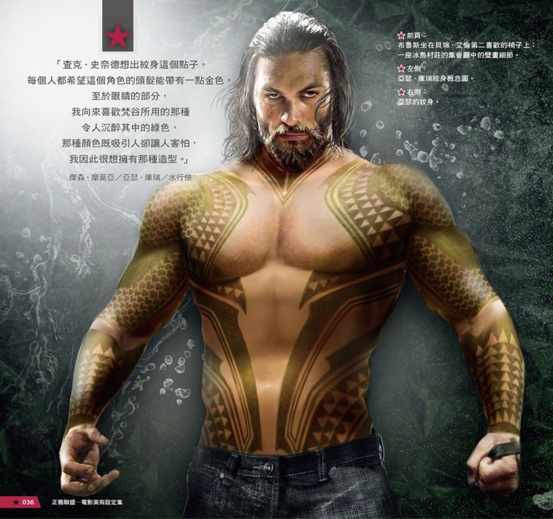 ▲狂傲帥氣的傑森‧摩莫亞飾演之「水行俠」身上有神祕刺青,為什麼會這樣設計呢?