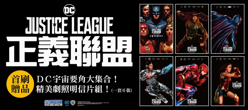 - 首刷贈品:DC宇宙要角大集合!精美劇照明信片組一套6張!