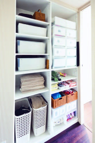 我希望把這個家整理成全家人都覺得舒服的地方, 所以,我一定會聽聽看他們的意見。看到先生不容易取放某個東西的時候,我會問:「哪裡覺得不方便呢?」孩子們4歲以後,我就會問他們:「媽媽把△△放在哪裡會比較好用呢?」「手手伸得到這裡嗎?」等等。長期下來,就不會變成只適用於我的收納場所,而是每個人都能輕鬆取用物品的舒適空間。此外,收納用品也要選擇沒有男女區別的中性款式,因為家是屬於全家人的地方,不分男女。