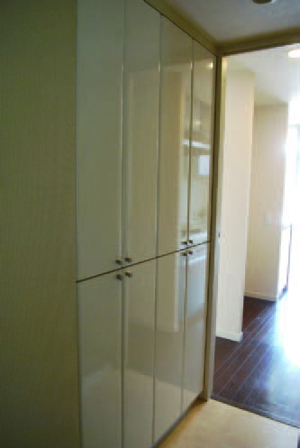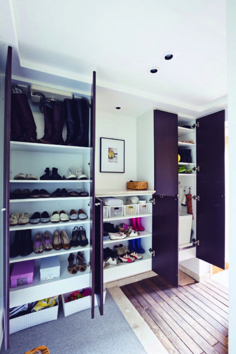從孩子還很小的時候開始,我們家的收納方式就是個人放個人的。因為我希望他們做到自己管理自己的東西。因此,只要使用個別收納的方式,就能輕鬆找到想要使用的東西。例如玄關的收納空間,照片裡左邊是我的,右邊是先生的,中間是孩子的。這樣要找鞋子時, 就不用每扇門開開關關地找。孩子的鞋子放在比較低矮的位置,這樣對他們來說比較方便。