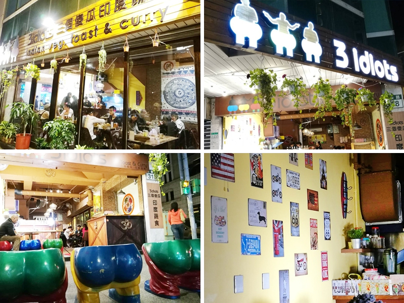 「三個傻瓜印度蔬食餐廳」發想來自於寶萊塢一部超級賣座的印度電影,電影裡的故事讓老闆Andy看了感觸好深,該影片看了有十八次之多。店名雖為傻瓜卻不是傻瓜,應該是中國人講的大智若愚吧!老闆說店門口的三個屁股是模擬電影劇照中的椅子。老闆Andy說每個孩子都有自己的特色, 父母親不需幫孩子做規劃與選擇,Andy念書時期是學習服裝設計,但是心裡最愛及最大的興趣是烹飪,經過與父母的溝通後才轉成經營餐廳的模式。老闆Andy來台十七年,最初開了一家葷食料理「印渡風情」餐廳,受到許多朋友的喜愛。到印度餐廳總會看到菜單上各式雞肉羊肉海鮮…料理,讓人以為印度人也嗜肉,殊不知他們更愛吃素,老闆Andy說,大部份印度人一個月只吃一到兩次葷食,蔬菜、香料會吃得比較多,所以印度人很少得癌症。