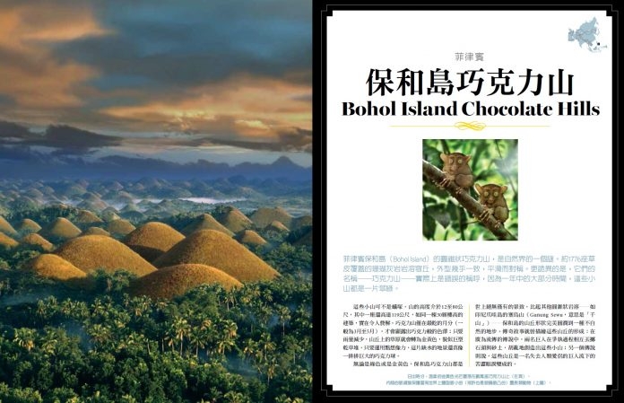 菲律賓保和島(Bohol Island)的圓錐狀巧克力山,是自然界的一個謎。約1776座草皮覆蓋的珊瑚灰岩岩溶穹丘,外型幾乎一致,平滑而對稱。更詭異的是,它們的名稱─巧克力山─實際上是錯誤的稱呼,因為一年中的大部分時間,這些小山都是一片翠綠。