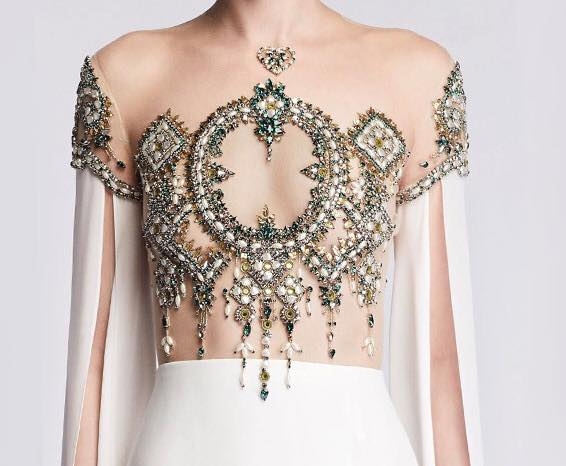 紅毯行頭品牌:紐約設計師Reem Acra白色薄紗禮服,定價約33萬元,CARTIER珠寶,總價1億6830萬元
