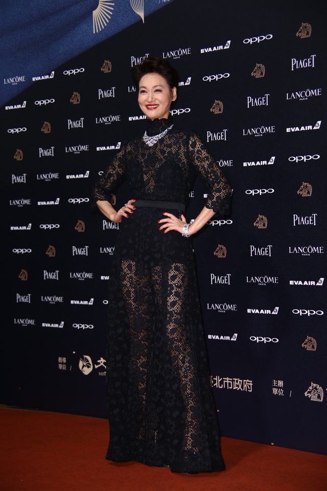 女星惠英紅以一身DOLCE & GABBANA禮服走上金馬紅毯,身上配戴了總價約7200萬元的BVLGARI珠寶,她精湛的演技也是這次奪金馬的熱門人選。
