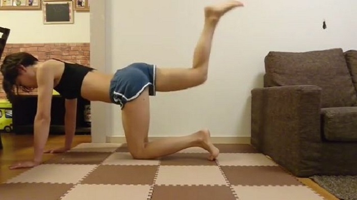 步驟一、雙膝跪地,二手伸直支撐住身體向上