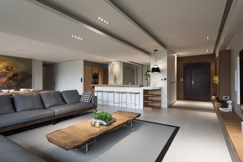 簡單的線條輔以溫潤色調,搭配原木天然紋理;以綠色植栽點綴空間,及富有禪義的茶杯陳列架;讓居住不再只是外在的裝飾,更可以是一個乘載心靈的空間。