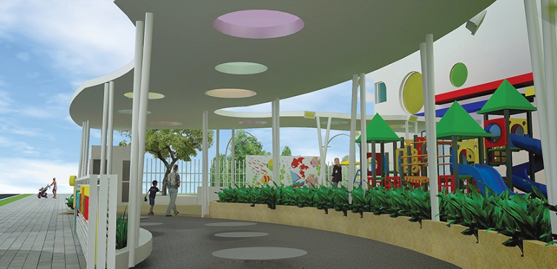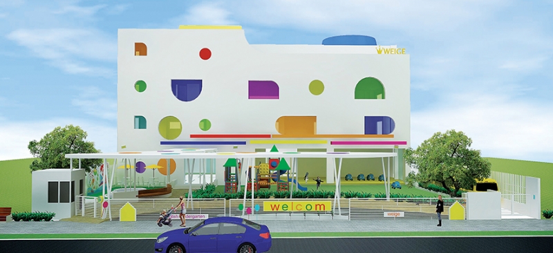 《聖經》裡描述,彩虹是上帝與人們訂下的美麗約定。設計師以此為主軸,期望賦予幼兒一個美好的學習遊樂環境。外觀以白色為基底,窗戶為不規則的色塊,象徵彩虹的到來;流線型的廊道作為橋樑,架構出一個美麗的約定。