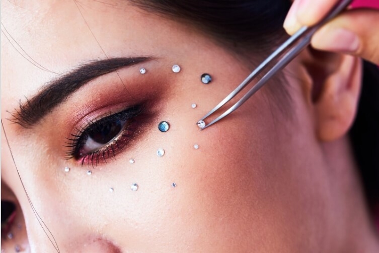 如果妳嫌閃亮的眼影太普通,"貼鑽"這招一定得學起來,在眼睛周圍黏上許多細鑽,整個人就像精靈女王一樣,閃爍耀眼光芒,一出現就馬上成為大家的焦點。