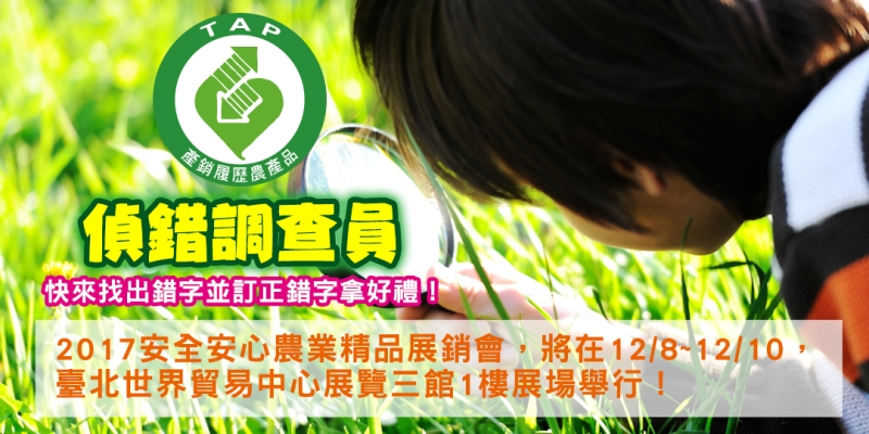 快來找出錯誤的文字,並在"產銷履歷粉絲專頁"中的活動下方留言把它們改成正確的,就有機會抽中產銷履歷好禮唷!