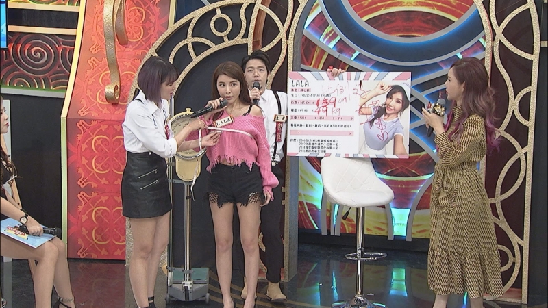 同樣來檢視履歷的LALA,資料上的身高165公分當場被利菁打槍,笑虧「百分之九千是騙人的!」結果一量發現,真實身高僅159公分,LALA一聽之下崩潰大喊:「亂講!」,不斷澄清自己真的有160公分。不過,在三圍項目,擁有傲人身材的LALA,測量出的真實三圍32D、26、35.5,也獲得現場一致讚賞,稱讚LALA擁有好比例的完美線條!