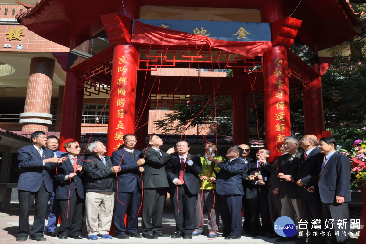國立北門高中為了紀念已故校長施金池,耗資100多萬元興建一座六角紀念涼亭「金池亭」,7日配合該校運動會舉辦揭牌啟用儀式。前教育部長吳清基、前總統府資政黃正雄及來自台北、台南及高雄的校友數十人參與。