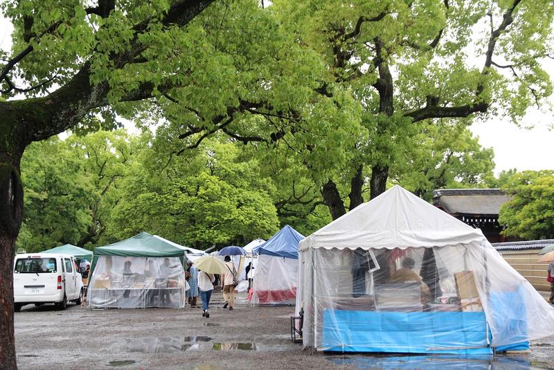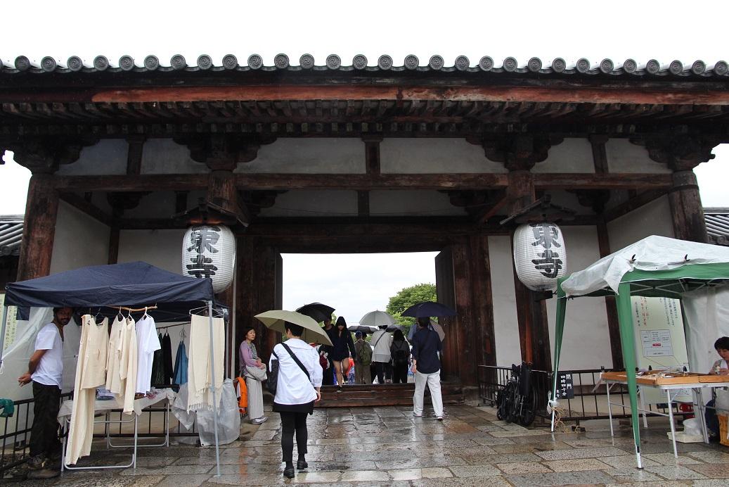 從東寺外圍開始,就可以看見市集的擺設。據傳最早的起源是為了奉茶給參拜者,但也有一說法,是該市集的成立,是為提供給民眾交換物品而存在。總共1,200個攤位,不少是古董攤位,也有創意手作,或者花藝、日本傳統食品等。