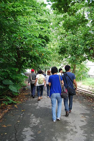 由於入口道路狹小,建議車輛在外圍停放後,以步行方式進入。一路上可以看到路旁鐵軌與住家,綠蔭滿天的林間小路,引領著我們往今天的目的地前進。