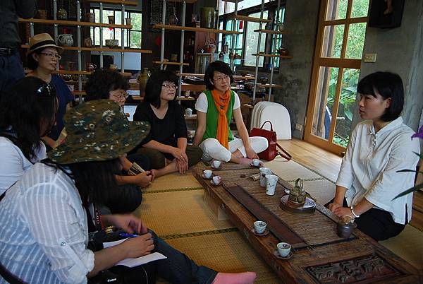 在體驗完茶道之後,蔡老師介紹室內其它地方的擺設及日常工作情形。