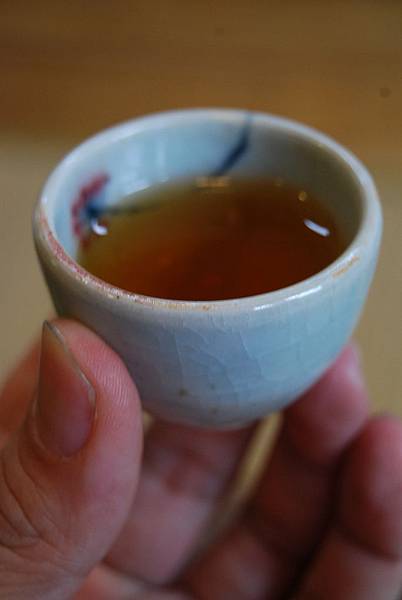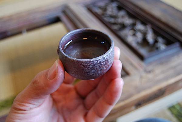 聞香之後再飲用,是品茗不可或缺的動作之一,這烏龍茶喝起來相當清新,用陶杯更能呈現它的原始風貌,也許是山泉水的關係,帶有一點甘甜感,讓茶味有不同層次的味覺體驗。