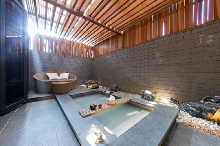 飯店設有湯屋、露天風呂與戶外風呂三種不同的溫泉設施,喜歡個人獨立私密空間適合選擇「湯屋」,每房皆備有獨立衛浴設備、舒適臥榻與梳洗台。尤其柚香湯屋最受港澳人士喜愛,採半露天設計,陽光從木格柵自然流瀉,光影扶疏、微風徐徐,偌大湯池或坐或半躺,全然盡享泡湯樂趣。