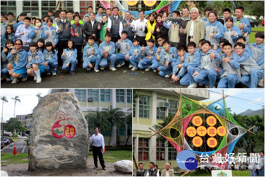 宜蘭縣礁溪國中創校迄今適逢60年,校長吳錫傳20日率同師生和校友一起點亮學子們製作的花燈歡喜慶祝,校友們更捐贈一顆重達16噸、名為「礁中基石」的紀念石碑,象徵為母校奠基,迎向另一個60年,持續作育英才,奉獻國家、社會。