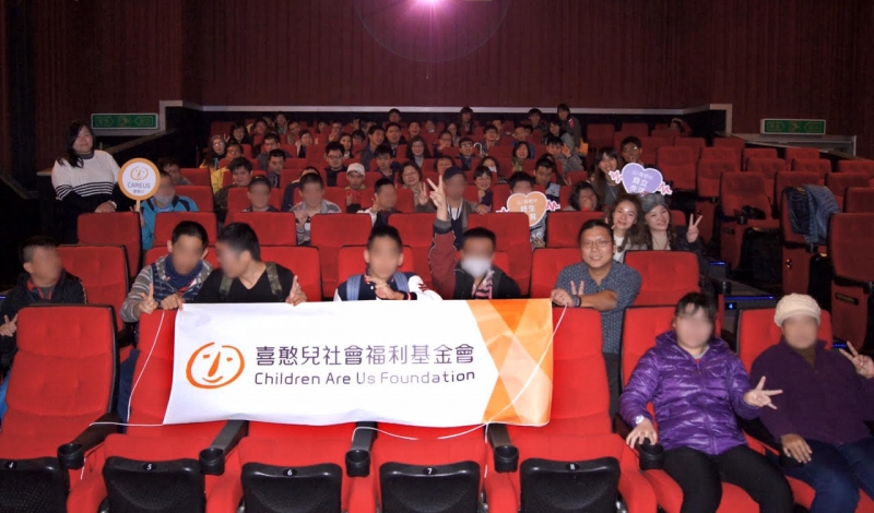 片商特別邀請喜憨兒社會福利基金會服務的憨兒與其家長,前往京華城喜滿客影城觀賞電影,70位來自台北工坊、民生工坊、新莊小作所的憨兒與家長,在基金會社工及老師的帶領下,一個帶一個、牽手走進影城,感受這部動人的電影。